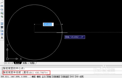3. 移動鼠標,或者直接輸入底面圓半徑: