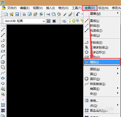 直接輸入命令 HELIX,或者點擊 繪膠搞格拿第讓棉速言益護圖→螺旋線 ,即可打開螺旋線繪制功能:
